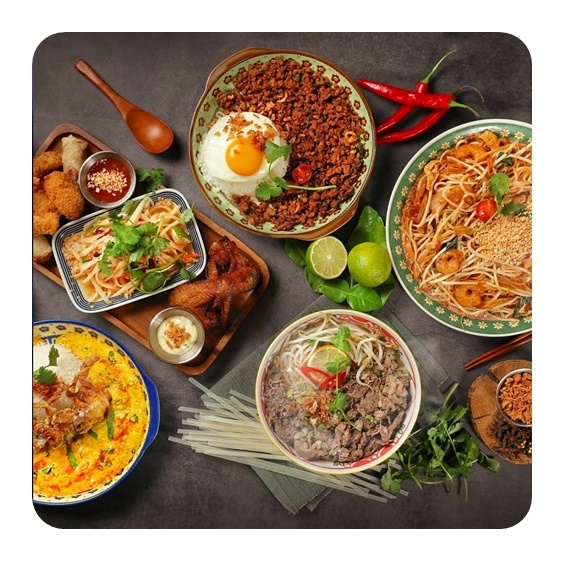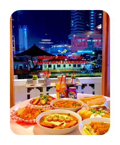 메뉴 : 똠양꿍 15,000 푸팟퐁커리 19,000원 모닝글로리 볶음 9,000원 돼지고기덮밥 11,000 밀크티 5,500원 소고기쌀국수 9,500원 똠양쌀국수 10,000원 얌운센 13,000원 새우팟타이 11,000원 소고기팟씨유 11,000원