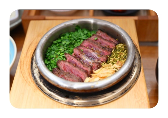 메뉴 : A코스 69,000 (1인 육사시미, 우설, 고기 5종, 꼬리, 대창, 솥밥) B코스 49,000원 (1인 우설, 고기 4종, 대창, 식사)